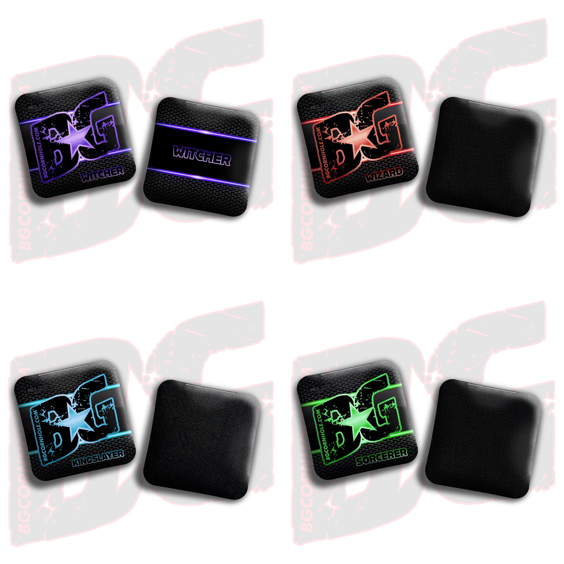 2026 BG Multiple Bag Types "Carbon Lines" - ACL Pro Stamped Cornhole Bags - SET OF 4 BAGS - Wizard - Red is backordered and will ship as soon as it is back in stock.