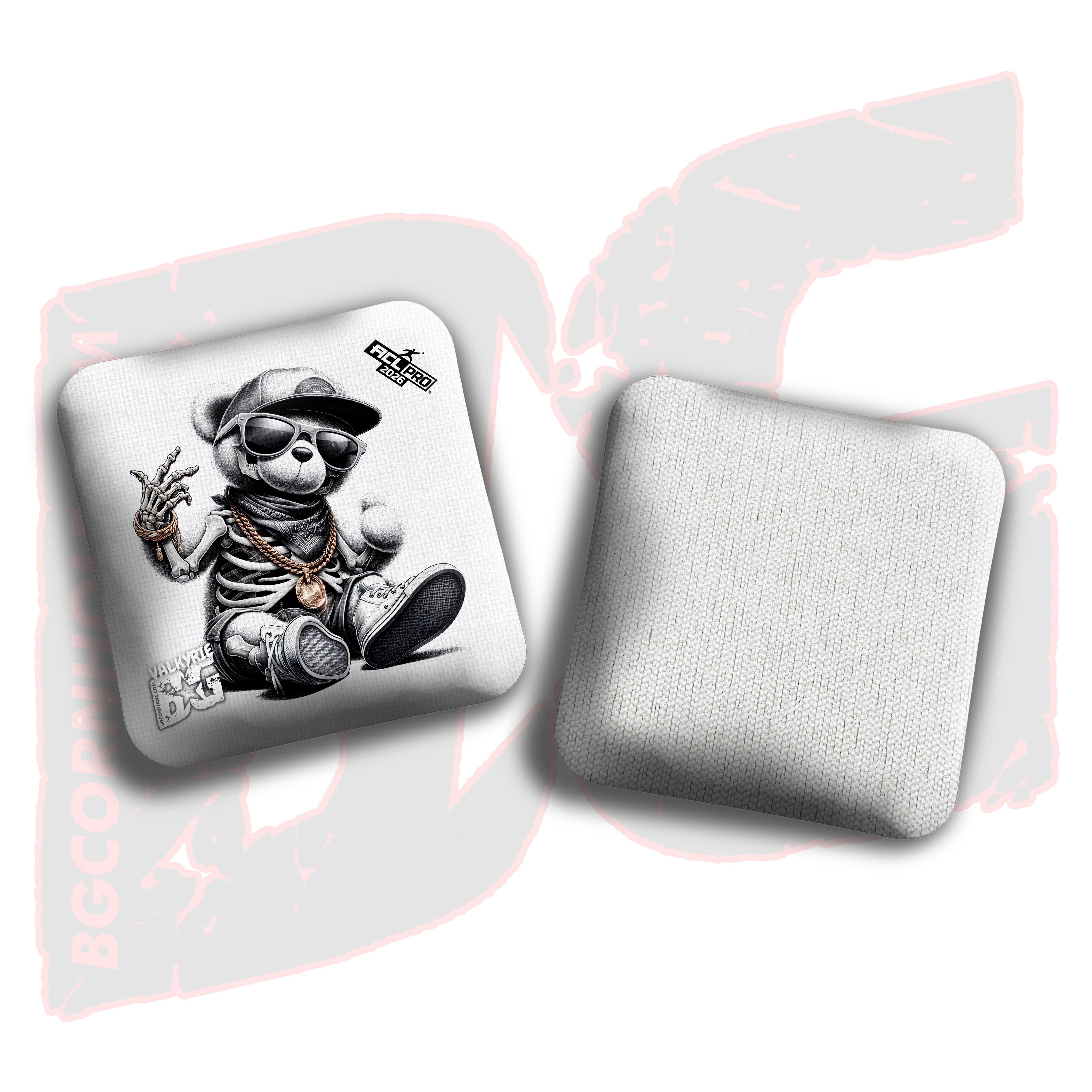 2026 BG Multiple Bag Types "Skeleton Teddy Bear" - ACL Pro Stamped Cornhole Bags - SET OF 4 BAGS - Omen - White is backordered and will ship as soon as it is back in stock.