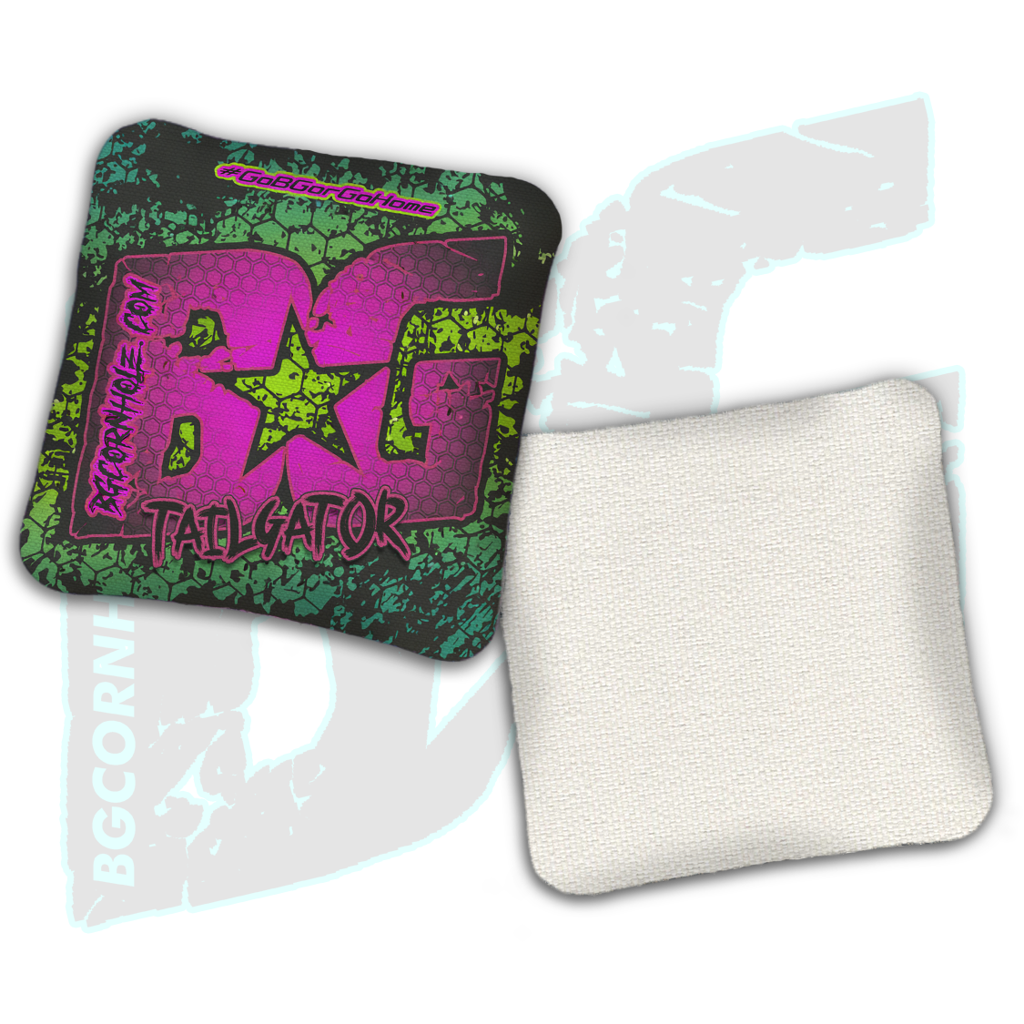 Introducing our Non-Stamped Cornhole bags, the Tailgator. The BG Tailgator is a non-stamped cornhole bag built for backyard play and tailgating!
